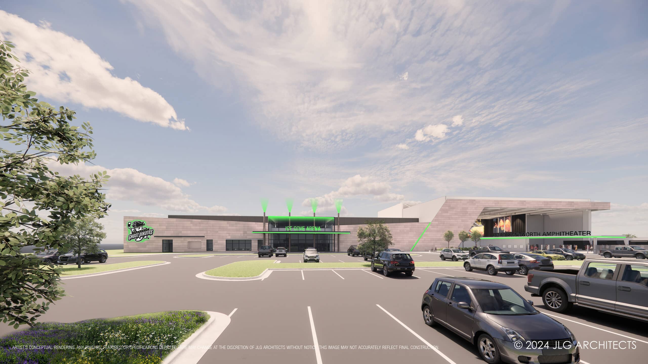 As the “Gateway to Georgia History,” Port Wentworth boasts a rich past, now skating into a vibrant future as the home to the Savannah Ghost Pirates, a professional minor league ice hockey team in the ECHL. Zawyer Sports, a private entity and owner of the Ghost Pirates, needed a practice facility and venue that would build excitement for the sport throughout the region. As the project progressed, a partnership was formed to combine two developing facilities, Zawyer’s hockey venue and the City of Port Wentworth’s new amphitheater. Here, JLG’s design team worked with the private venture and City staff through programming and pre-design to determine the final program and concept. In collaboration with the City, Zawyer Sports has since broken ground on a 90,000 SF training facility, with a two-sheet ice rink on a 150-acre multi-use park. Combined programming contributes a restaurant, along with a 5,000-seat amphitheater and unique club-level seating and suites, collectively providing 145,800 SF of brand-new performance and sporting venue space. These facilities will be located in Port Wentworth’s new Anchor Park, which will incorporate a variety of multi-use fields and courts, including space for pickleball, softball, baseball, and soccer. The new Ghost Pirates Ice Cove and City of Port Wentworth’s Amphitheater are set to open in the fall of 2026, elevating the athlete, fan, and community experience.